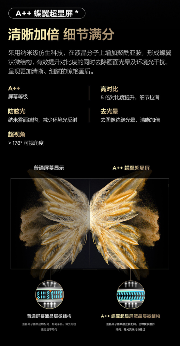 在此基礎上,TCL C11G全系搭載A++蝶翼超顯屏,最高配備220分區微米級點陣式控光,屏幕可達1000nits峰值亮度與7000:1的對比度,色彩方面則做到了157% BT.709行業超高色域值,并且支持全通道4K 120Hz高刷新率,同時新品也采用了下邊框隱形設計+超窄金屬邊框設計,顏值上也同樣出色。