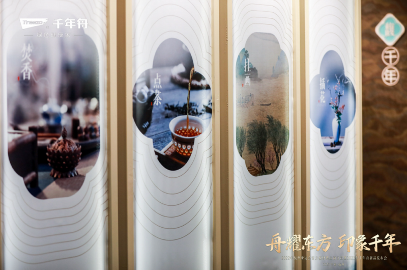 同時,千年舟以「致美生活」為錨點,演繹中國文化,“金縷韻橡”、“滄海韻橡”、“露影茗榆”、“玉葉輝白”、“玉葉沉香”等26款宋韻新花色的發布,讓國潮更具象、更深入人心。
