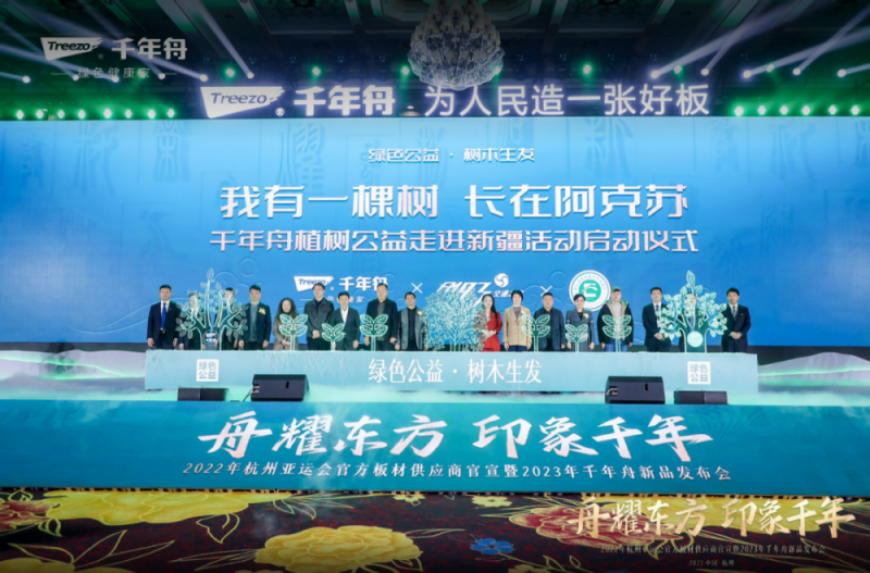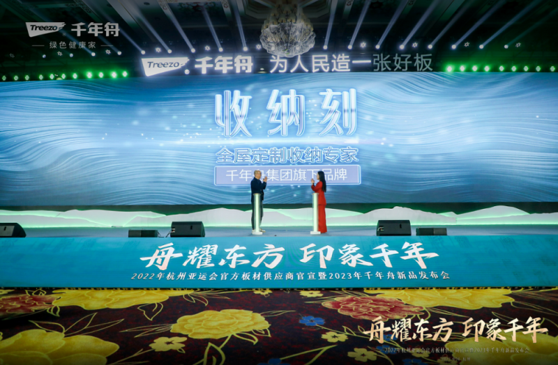 時代的洪流推動環保理念不斷升級,國民健康意識與日俱增,國民品牌的千年舟步履不停,矢志不移探索健康家居生活。2月21日,杭州亞運會官方板材供應商官宣暨2023年千年舟新品發布會在杭州·蕭山太虛湖假日酒店盛大啟幕。