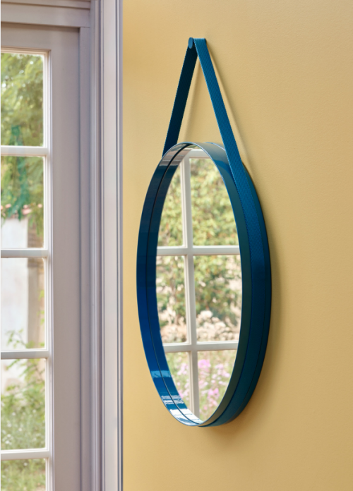 Strap Mirror采用簡約的設計,編織帶嵌于邊緣凹槽中,可以輕松地將鏡子安裝在墻上,其簡潔的圓形設計使其成為懸掛在浴室、臥室和入口大廳的理想選擇。