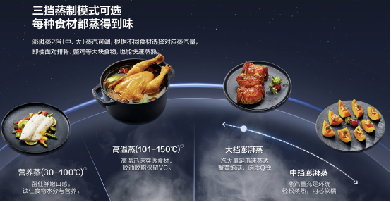 在蒸方面,老板旋轉蒸烤炸一體機CQ925也一樣有著專業級別表現。它有澎湃蒸2檔(中、大)蒸汽可調,蒸制南瓜等食材時可選擇中檔,蒸汽量充足環繞輕松蒸熟,內芯軟糯;面對螃蟹等海鮮食材,選擇大檔澎湃蒸,釋放大量蒸汽迅速蒸透螃蟹,讓蟹黃更加飽滿,肉質Q彈。若想挑戰點高端的,那不妨開啟老板的蒸烤多段組合模式,蒸+烤模式可靈活組合,一次設定實現“先蒸后烤”或者“先烤后蒸”。周末朋友小聚來一道香酥鴨,先用105℃蒸70min再選擇215℃風扇烤25min即可成就你的大作,就是這么簡單。
