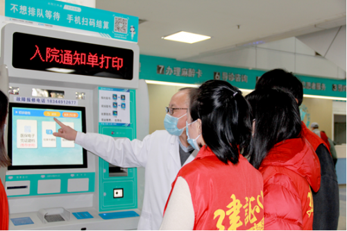 首先我們先看向福州,福州地鐵4號(hào)線(xiàn)項(xiàng)目組青年志愿者小分隊(duì)來(lái)到了福建省醫(yī)科大學(xué)附屬第一醫(yī)院。醫(yī)護(hù)人員向志愿者們講解了志愿服務(wù)的內(nèi)容和志愿服務(wù)禮儀,并同時(shí)介紹了醫(yī)院門(mén)診科窒的分布情況,幫助志愿者們更快地熟悉醫(yī)院環(huán)境和各相關(guān)科室業(yè)務(wù)。此次志愿服務(wù)崗位設(shè)置在外科門(mén)診大廳內(nèi),主要為患者提供導(dǎo)醫(yī)、資料建檔、充值掛號(hào)、結(jié)算取藥、打印檢驗(yàn)報(bào)告、問(wèn)詢(xún)指路等服務(wù)。“阿姨,可以在自助機(jī)上掛號(hào),我?guī)湍?”“您好,消化內(nèi)科可直達(dá)電梯到四樓!”
