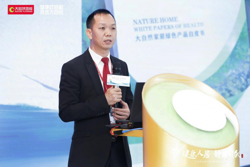 當前消費者關于健康環保的需求日益凸顯,在綠色人居的主流趨勢下,大自然家居品牌與產品研究管理部研究院院長楊亮慶先生,現場隆重發布DMF生態靜音科技新品。為了保證實木地板的天然環保,同時解實木地板的響聲問題,大自然家居研究院歷時三年,經過千百次測試論證,創新研發DMF生態靜音科技,以水凝保護層代替膠膜,做到健康無膠成膜,突破行業技術壁壘。