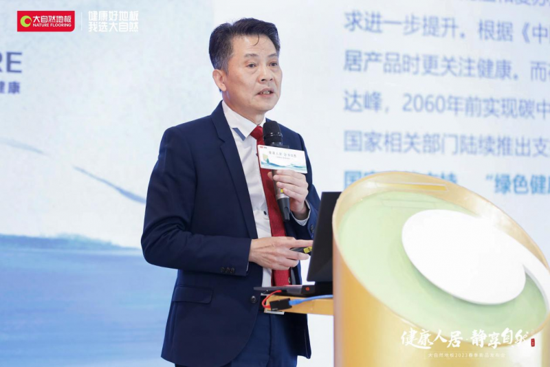 發布會上,大自然家居董事會主席、集團CEO佘學彬先生在開場致辭中表示:作為行業的領先品牌,大自然家居深耕健康家居29年,始終秉承“擔環保責任 普健康生活 做健康家居”的企業使命,致力于為消費者解決在家居環保方面的諸多痛點問題。為了守護中國億萬家庭的健康,今年大自然家居進行品牌定位升級,提出“我愛大自然 自然更健康”的價值主張,推出6零健康新標準,構建整體全空間健康生態。