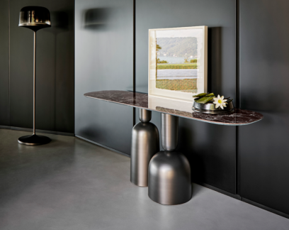 形式的輕盈與和諧是這款桌子的標志,喇叭形的桌腿非常輕薄,形成了懸掛般的視覺效果。