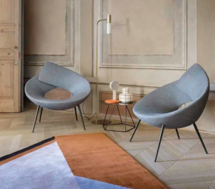 NEUILLY是一款幾何風格非常強烈的椅子,金屬管和襯墊組合出流暢的曲線。簡約精煉之余,又保證了背部和手臂的自然支撐。
