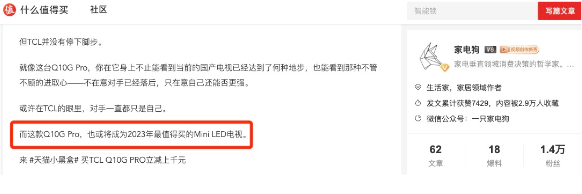 綜合來看,TCL Q10G Pro確實在電視的畫質與軟硬件體驗方面有著相當突出的優勢,也怪不得像@家電狗這些行業權威大V都直言TCL Q10G Pro是2023年最值得買的Mini LED電視,這個稱號用在Q10G Pro上確實是實至名歸啊。