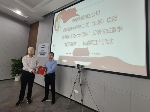 為更好地推動黨風廉政建設工作,一體推進“不敢腐、不能腐、不想腐”體制機制建設,全面從嚴治黨向縱深發展。4月25日下午,中建安裝南方公司深圳地鐵13號線(北延)項目召開“超英廉潔文化示范點”啟動會。中建安裝南方公司黨委副書記、紀委書記、工會主席吳國章出席會議并講話,啟動儀式由項目執行經理陳太德主持。