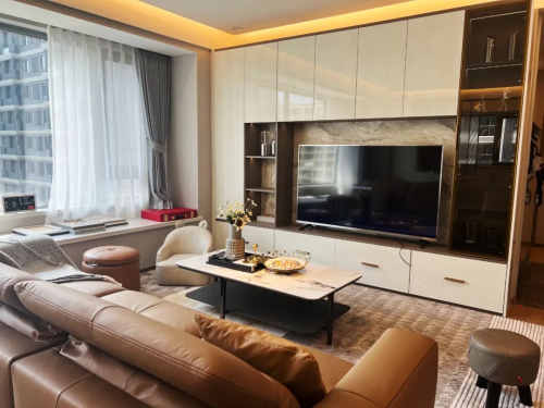 下面幾張圖是客戶家里的裝修實景圖,從空間風格的一致性、軟體和定制產品品質的整體性來看,都已經相當出色。而這個案例,就是來自于顧家一體化整家的現場效果圖。