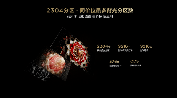 當然,除了軟件方面的優化之外,此次TCL Q10H在畫質硬件表現上也是同級別中的佼佼者。像是在大家比較關心的背光分區數量上,這次TCL Q10H就搭載了最高2304個背光分區,要知道一般旗艦電視分區數量僅有1000左右,TCL Q10H實現了旗艦電視分區數量的翻倍提升。在兩千級的背光分區加持下,TCL Q10H擁有更為優秀、精準的控光能力表現,能夠有效減少光暈問題。