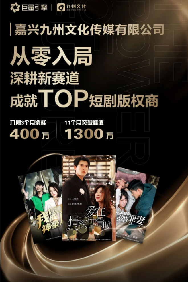 好的內容,是打動人心、觸達人性的,可以穿越時間,為品牌帶來滾雪球般的復利價值,98%的CMO與97%的營銷專家們均認為,“優質的內容是打動消費者的基礎”。顯然,「下載經營案例大獎」的獲得者九州文化抓住了正在到來的內容紅利窗口,一躍成為內容營銷領域的佼佼者。近兩年,短劇市場持續火熱,九州文化快速入局,以內容驅動模式,在短短一年時間內,便從零搭建起可持續的長效經營陣地完成破圈,成為短劇賽道的一匹黑馬。