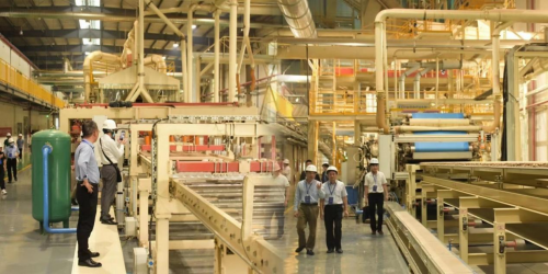 早在2016年,板材行業(yè)智能化工廠建設(shè)領(lǐng)域還是待開(kāi)發(fā)的“荒地”時(shí),千年舟集團(tuán)便陸續(xù)在山東、江蘇等地打造智能工廠。2021年正式動(dòng)工建設(shè)的江蘇澳思柏恩(邳州)智能工廠也是目前千年舟集團(tuán)規(guī)模最大、產(chǎn)值最高的一家工廠,一期項(xiàng)目目前已投入使用,占地275畝,總產(chǎn)能70萬(wàn)m3,解決就業(yè)人口400人以上。