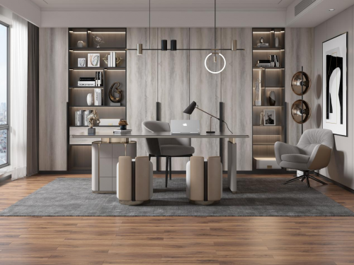 漠色琉璃的花色,給予感官酣暢淋漓的快感,“琉光凝漠色,璃彩回駝聲”,個性化漠色的實木復合地板在光的作用下變幻莫測,特有的流動之感似乎在訴說著“凝固的動態”這一獨特的藝術手段。