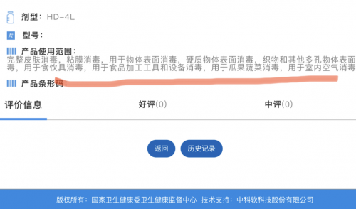 *示例來自于水神HD-4L消毒機在全國消毒產品網上備案信息服務平臺備案信息