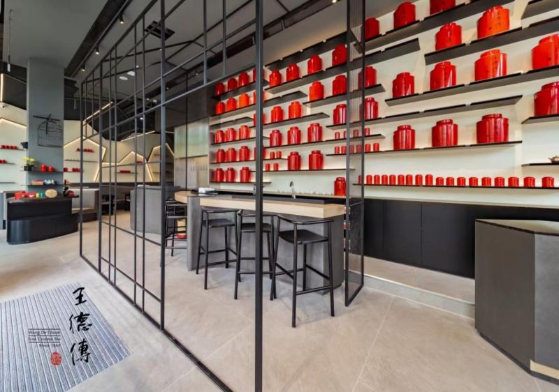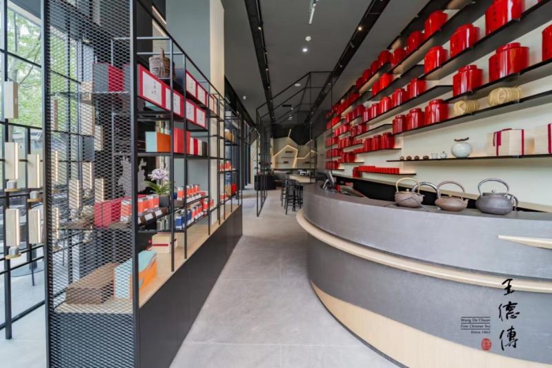 王德傳茶莊中國區「茶館旗艦店」,店內裝潢風格簡潔時尚,同時在空間設計上完整展現中國當代文人優雅風范,結合了茶葉零售、傳統工夫茶與新式茶歇的業態形式,融合了伺茶、奉茶、飲茶的多樣性活動,透過聽覺、視覺、嗅覺、味覺等感官體驗,展演當代文人多元豐富的美好生活。即使不買茶,只是到茶館品嘗一杯新茶,在放松身心的同時,也可以享受與朋友交談的歡快,是約會與靜坐的理想場所。