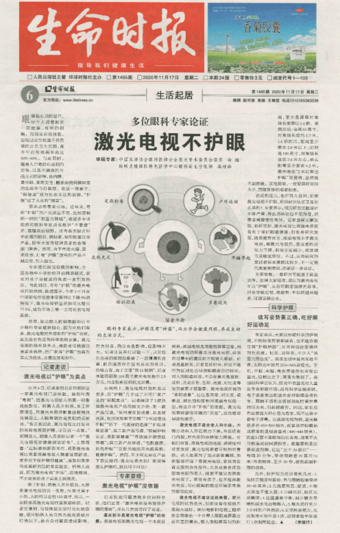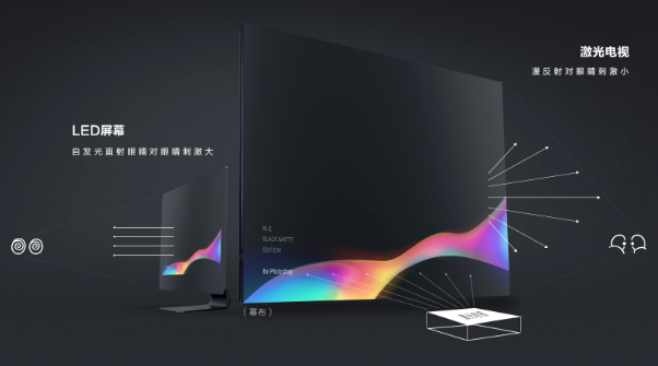 在激光電視發展歷程中,護眼一直被視為其“看家技術”,原因是激光電視制造商認為激光電視和其他電視、投影儀等設備相比,對眼睛的傷害要小一些,因為它采用的是漫反射成像方式,而且是全像素反射,用戶看起來清楚、舒適,還能規避有害短波藍光,對保護眼睛有一定的效果。