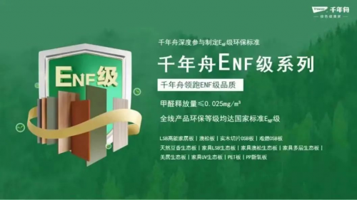 千年舟以高標準、嚴要求的優質板材和加工技術,以行業領頭的責任心領跑,目前已實現“ENF級”產品全渠道覆蓋。