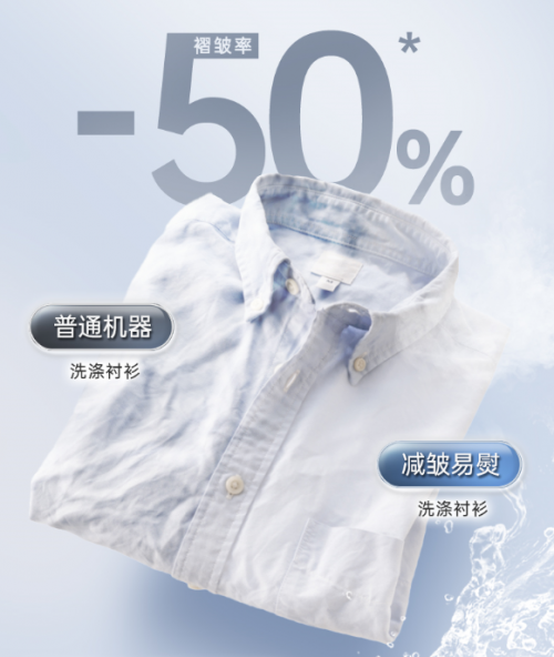 IronFast減皺易熨科技,減少50%衣物褶皺率*
