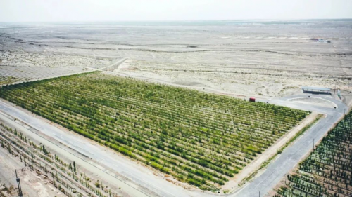 1986年,阿克蘇地區啟動了柯柯牙荒漠綠化工程,在近40年里,一代又一代阿克蘇人在荒灘戈壁上建成了南北長25公里、東西寬4公里集生態林、經濟林、防風林于一體的防風治沙“綠色長城”,使阿克蘇的沙塵天氣從每年100天左右減少至20天左右,昔日的“風沙策源地”變成“綠色聚寶盆”,孕育著勃勃生機與希望。