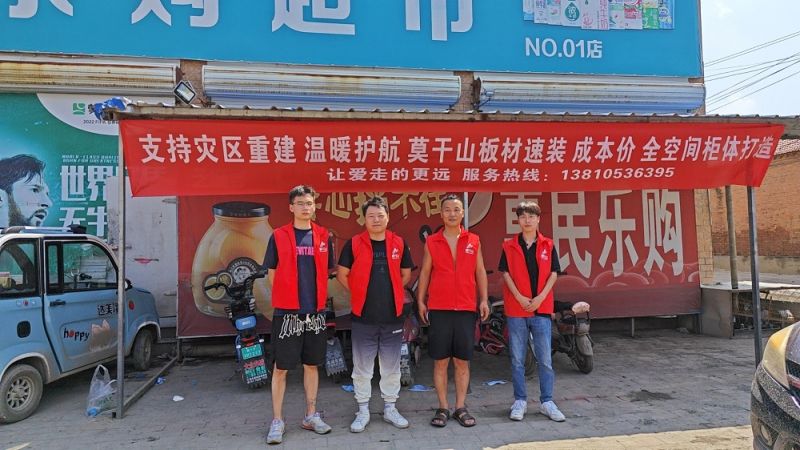 洪水災害成為了一線抗災工作人員的重大挑戰。在這個關鍵時刻,得知一線消防隊員們買不到拖鞋的消息后,莫干山板材北京經銷商代表白小龍、白雨軒父子二人和喬志勇先生連夜行動,經過緊急搜尋,成功湊集了百余雙拖鞋和1萬瓶飲用水,8月4日陸續送達消防隊員們休息點和受災村莊小區,保障消防隊員和災區人民基本生活需求。在后續抗洪救災過程中,莫干山板材北京運營中心持續加持災后重建工作,面對災區人民住房重建,不賺一分利潤,成本價提供板材。