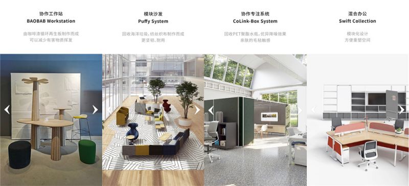 震旦創(chuàng)新中心運用3R原則融入辦公家具設計之中:例如以由咖啡渣循環(huán)再生板制作而成BAOBAB Workstation 協(xié)作工作站,減少有害物質揮發(fā);Puffy System模塊沙發(fā)由回收海洋垃圾紡絲織布制作而成,使得面料更加堅韌、耐用;CoLink-Box System專注協(xié)作系統(tǒng)材料為PET聚酯水瓶回收,擁有優(yōu)異降噪效果,親膚的毛氈觸感,成為辦公場景切換專注私密和團隊協(xié)作的靈動空間;Swift Collection混合辦公支持模塊化設計,更適應數(shù)字化企業(yè),方便重塑空間。