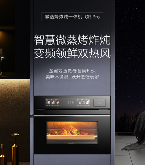 凱度「微魔方」系列新品凱度GR Pro微蒸烤炸燉一體機已經上市,集合了「微魔方」復合烹飪技術、「狂暴引擎」雙直噴大蒸汽、「颶無霸」雙熱風、雙熱風空氣炸、特研養生燉、1100W 6 檔真變頻微波等等黑科技,除「微魔方」復合烹飪技術之外,凱度GR Pro的功能模式也極其豐富,9大全域烘烤、3檔蒸烹鎖鮮、空氣炸、養生燉.....一臺機子能滿足更多烹飪需求,可謂真正的微蒸烤機皇。內腔的陶瓷膜也進行了全新升級,采用最新的凝光陶瓷涂層,相較于傳統的搪瓷,不僅更加易于清潔打理,基材也從易銹易蝕的鐵升級為304不銹鋼,更加經久耐用。外觀質感也再次升級,13.6英寸寬域晶彩屏不僅簡奢高端,而且觸控靈敏,操作方便。