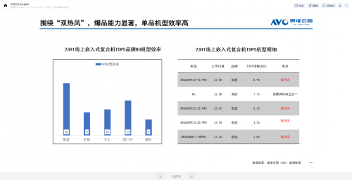 其中,“在新廚電領(lǐng)域,凱度是許多傳統(tǒng)廚電品牌非常關(guān)注的品牌”,趙總特別強(qiáng)調(diào)了凱度的亮眼表現(xiàn):在23H1線上嵌入復(fù)合機(jī)TOP5品牌80機(jī)型中,凱度位列第一;在23H1線上嵌入式復(fù)合機(jī)TOP5機(jī)型中,僅凱度一家就占據(jù)了整整4個(gè)席位,以壓倒性的優(yōu)勢(shì)領(lǐng)跑其他品牌。他表示:“究其原因,凱度在技術(shù)上、產(chǎn)品布局上、以及市場(chǎng)定價(jià)上都有明顯的優(yōu)勢(shì)”