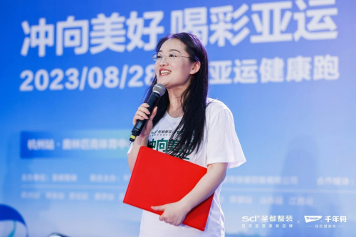 千年舟集團副總裁田茂華女士、副總裁陸功田先生受邀出席活動現場。田茂華女士在致辭中鼓勵大家發揚“自信樂觀、不畏挑戰”的亞運精神,邁步奔跑,跑出活力風采,盡享健康快樂。讓更多人發現杭州之美,感受運動之樂,以更加積極向上的心態,去擁抱幸福生活,迎接精彩亞運!