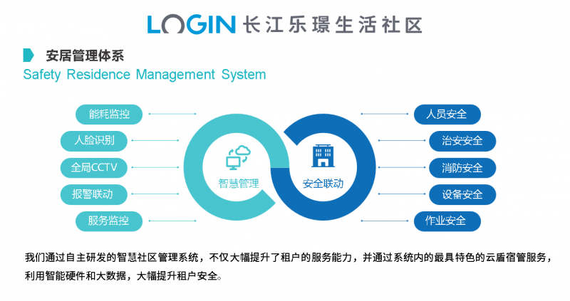 社區(qū)還引入了樂璟生活社區(qū)獨立開發(fā)的“樂享住”智慧社區(qū)管理系統(tǒng),鏈接了智慧硬件設(shè)施體系、智慧軟件服務(wù)體系和智慧公寓生態(tài)體系,引進智能安防、智能家居,實現(xiàn)互聯(lián)互通、人工智能與公寓服務(wù)相結(jié)合。