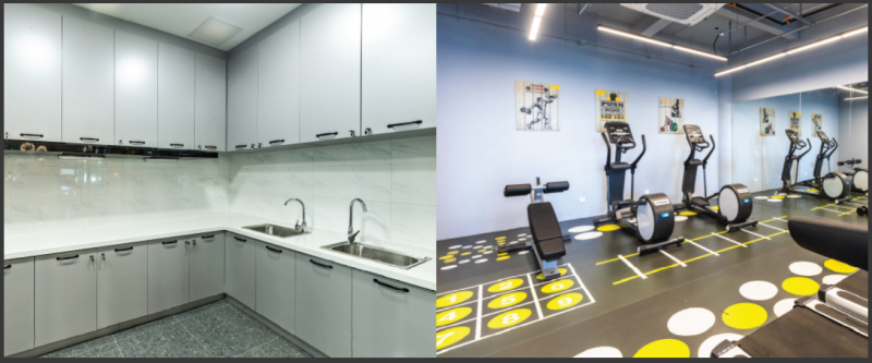 在公區(qū)配套和服務(wù)上,社區(qū)配有共享廚房、健身房等共享設(shè)施,還聯(lián)合周邊商圈,提供有償?shù)耐\噲龇?wù),為有車一族的企業(yè)職工帶來便利。