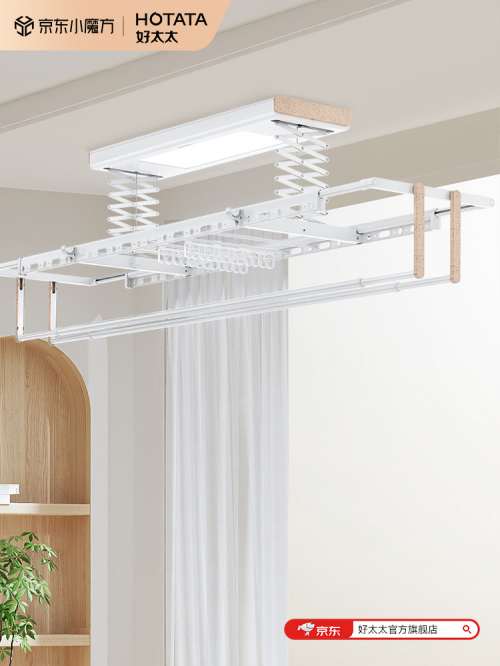 在日常家居生活中,晾曬被子其實挺麻煩的,如果洗曬衣服了,被子就沒有地方晾曬,只能錯開時間晾曬,白白浪費時間,針對這個小麻煩,好太太研發團隊在晾桿設計上進行了革新,把晾衣桿和晾被桿調整成錯位設計的模式,這讓它的另一款好太太溫暖治愈系大屏智能晾衣機D-3148實現了衣被同曬,不僅可以同曬還做到了互不影響,始終保持良好的通風狀態,不影響衣物曬干效果。