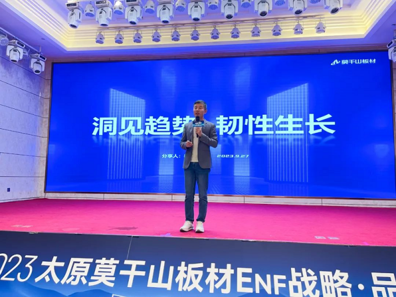9月27日,莫干山板材山西區(qū)域舉辦了"重塑晉界”2023山西莫干山板材ENF戰(zhàn)略·品牌煥新啟動會。本次會議集結(jié)了三百余位莫干山板材山西區(qū)域家具廠渠道合作伙伴和各級經(jīng)銷商代表。浙江云峰莫干山營銷有限公司總經(jīng)理姜全建先生、總經(jīng)理助理凌歡歡先生、品牌總監(jiān)劉佳欣女士;莫干山板材經(jīng)銷商代表山西太原越久龍木業(yè)有限公司總經(jīng)理張菊汀先生出席本次會議。