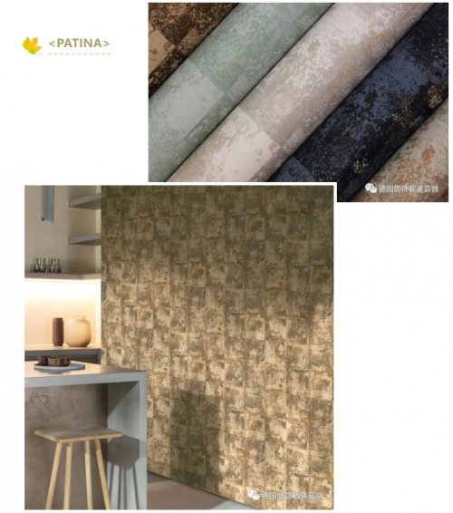 PATINA這組設計巧妙地描繪了隨著時間流逝,材料日益老化的獨特跡象。破舊的瓷磚外觀,面層鑲嵌精致的云母浮雕效果,時尚而完美。