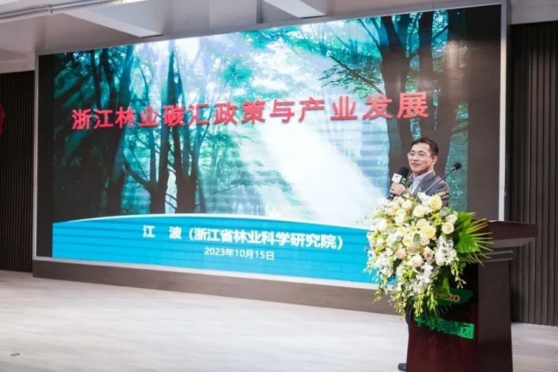 隨后,浙江省特級專家、浙江省林科院研究員江波圍繞全省“雙碳”推進思路、浙江林業碳匯工作情況和林產工業發展等方面,做了《林業碳匯政策與產業發展》的詳細介紹,提出林產工業契合“雙碳”目標,要重視木材保護行業發展及木材循環利用,積極推進行業綠色認證。