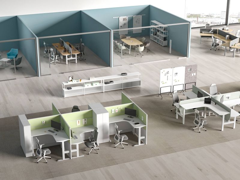 Standy升降桌搭配會議桌和隔斷,打造多樣化職員區域