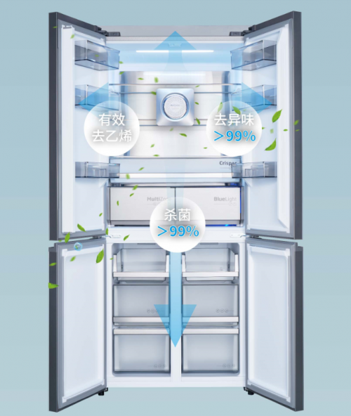 LTC+全時凈味,雙區除菌。冷藏、冷凍分別配置高效LTC+模塊,全時段全空間智能感應異味,釋放清新離子殺菌去味,有效去除乙烯,99%去異味,及99%殺菌*。保持清新,呵護健康。