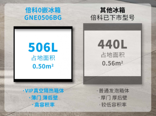 60cm超薄箱體,VIP真空隔熱材料,減薄機身,提升可用容積。相同體積,更薄機身,更大容量。