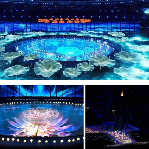 從「潮起亞細亞」,到「荷桂共生輝」,從「心相約 夢閃耀」,到「乘夢飛 再相約」,從亞運到亞殘運,兩幅心心相融,美美與共的拼搏長卷在金桂飄香時節鋪陳交融。