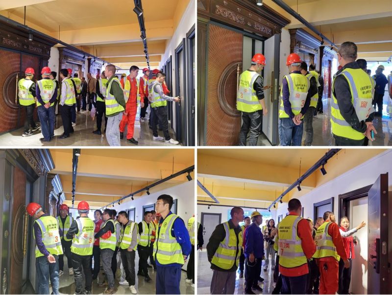 比賽結束后,全體參賽者參觀了新新門業的展廳,這是一個了解新新門業產品的絕佳機會。展廳內陳列著新新門業的產品,展示了其品質和設計的多樣性。參賽者仔細觀看新新門業產品的細節,了解新新門業的工藝和材料選擇。參觀新新門業的展廳不僅為參賽者提供了一個學習和交流的機會,還能讓他們更深入地了解行業的發展趨勢和創新技術。這對他們的職業發展和技術提升都具有積極的影響。