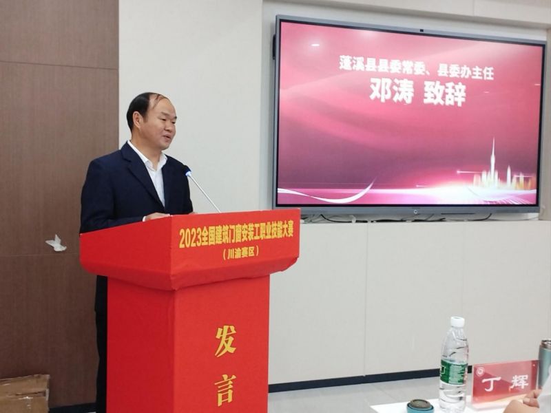 蓬溪縣縣委常委、縣委辦主任鄧濤同志,代表中共蓬溪縣委、縣政府,向百忙之中抽出時間蒞臨蓬溪的各位來賓表示熱烈的歡迎!向長期以來關心支持蓬溪發展的各界人士表示衷心的感謝!經過多年不輟耕耘,蓬溪成功創建“中國門都”,擁有全國唯一縣級門業產業集群特色,是西南最大的門業和智能家居生產基地。此次大賽在蓬溪舉辦,希望大賽組織機構和全體工作人員以一流的競賽組織、一流的服務保障,將本次技能大賽辦好辦精,讓大家賓至如歸、難以忘懷。同時也希望各位來賓多到蓬溪走走看看、傳經送寶、投資興業,蓬溪將竭力為大家服好務,讓大家在蓬溪放心投資、安心創業、舒心生活!