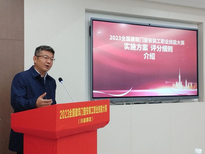 會議伊始,分會秘書長丁輝向在場的各位領導嘉賓表示熱烈的歡迎,并歡迎來自川渝賽區的安裝工師傅們參與本次大賽。他向一直以來默默在門窗行業中耕耘,盡心盡力推動行業高質量發展的工作者們表示誠摯的敬意。作為建筑和裝修的重要組成部分,門窗的作用不容忽視,因此對安裝技術的要求也日益提高。通過比賽能提高門窗行業從業人員的素質和改善人才供給結構,推動行業就業工作和技術發展。舉辦職業技能大賽旨在激勵門窗行業的技術勞動者努力提高技術水平,提升整體素質。希望參賽的安裝工師傅們能夠發揮出自己的最高水平,為推動行業的發展做出貢獻!