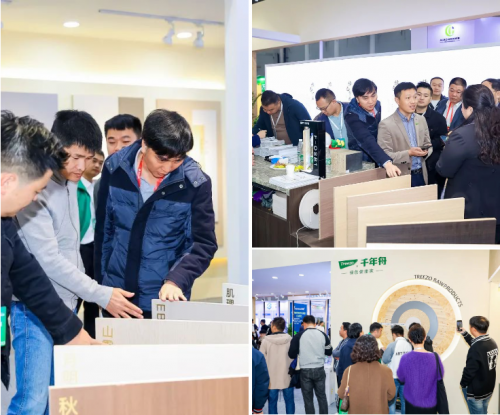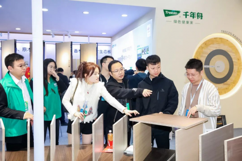 現場,眾多來自全國各地的客商,對千年舟展示的全新花色和各類科技板材表現出了相當高的興趣,在他們看來,“為人民造一張好板”的千年舟,深耕板材領域超過24年,為全國人民的美好生活建設和實現提供了強大且穩定的支撐。