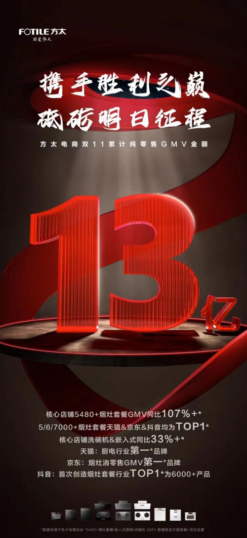 “用創(chuàng)新科技重塑中國廚房?jī)r(jià)值”!2023年的雙十一,方太品牌再傳“捷報(bào)”:10月23日-11月11日期間,方太全品類產(chǎn)品在電商平臺(tái)累計(jì)純零售GMV銷售額高達(dá)13億,方太洗碗機(jī)品類商品更是在天貓官方旗艦店及京東自營店鋪累計(jì)銷售額同比增長58%,推動(dòng)方太洗碗機(jī)產(chǎn)品全年銷量再創(chuàng)新高,并繼續(xù)保持高速增長,持續(xù)擴(kuò)大市場(chǎng)份額。