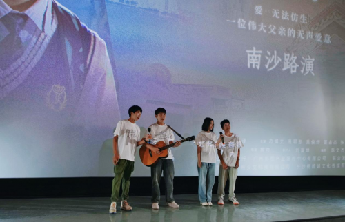 路演現場,四位小演員劉銘澤、邊博文、易穎彤、吳俊燁率先登場,以感人的歌聲為觀眾獻唱電影片尾曲《父親》。通過深情的旋律、感人的歌詞和悠揚的吉他伴奏,歌曲生動地描繪了父子間深沉而溫暖的情感,傳遞了父親對兒子的無私奉獻,以及兒子對父親的感激之情,勾勒出一幅父子之間深情厚意的畫卷。