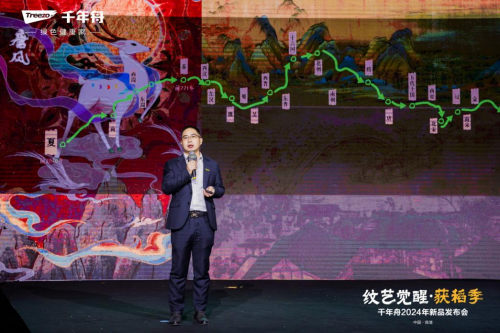 圖注:千年舟新材科技集團股份有限公司花色開發(fā)經(jīng)理胡爐偉發(fā)布千年舟新花色