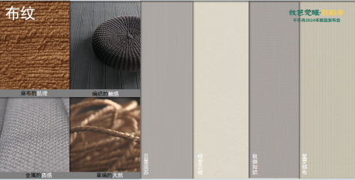 精紡之魅系列中的布紋取之于天然的藤編紋理,結(jié)合當(dāng)下流行的肌理融合手法,將布紋與石紋,布紋及科技紋的肌理相結(jié)合,從而打造出的適用家居門板、墻板等一體化的花色。