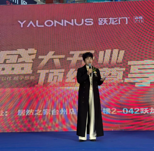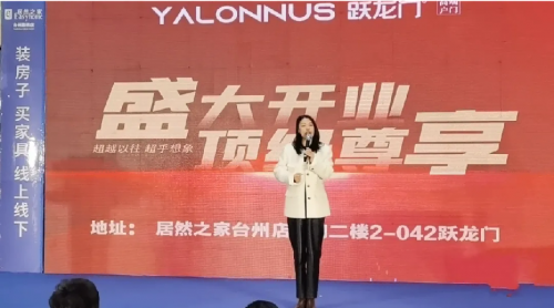 躍龍門運營總監顏文雙致辭。她表示,當下是消費主權的時代、是個性化產品定制的時代,相對于傳統的過去,門,除了是我們家庭的一道安全防線以外,門還代表著身份、地位、品質及幸福,所以消費者對門的文化和需求越來越高。