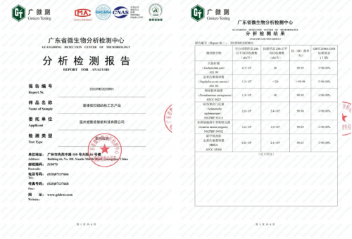 而應(yīng)用了這項黑科技的千年舟抗菌涂層門執(zhí)手根據(jù)廣州微生物分析檢查中心的檢測結(jié)果 (報告編號2023FM22020R01),其對于大腸桿菌、金黃色葡萄球菌、銅綠假單胞菌、鼠傷寒沙門氏菌等菌種,具備高達99%以上抗菌效果。集高效廣譜、安全無毒、效果持久等多方面優(yōu)勢于一身,從細節(jié)處防菌、抑菌,守護家人健康。