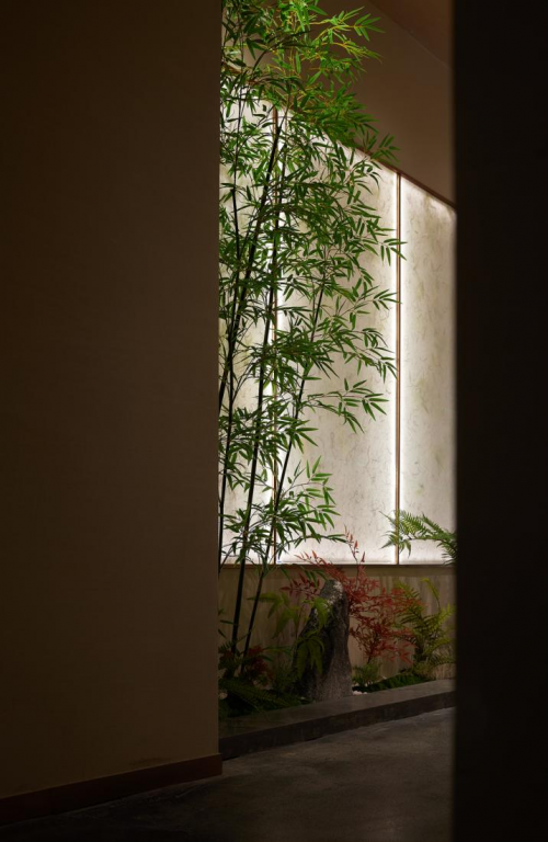 路易斯·康曾說過“建筑,立于我們和世界之間,靜謐代表不可度量?!边@樣存在于靜謐與光明之間的界閾之處,是靜謐之美無形的源泉。光,賦予空間千變萬化的明暗層次,從燈光的巧妙布置,到材質的細膩紋理,再到建筑的格局分布,無一不體現出對光與空間關系的精妙處理。
