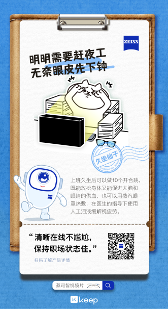 當(dāng)“內(nèi)卷”成為當(dāng)代職場(chǎng)新常態(tài),越來(lái)越多的“打工一族”正面臨著身心健康的困擾。長(zhǎng)期久坐、缺乏運(yùn)動(dòng)、長(zhǎng)時(shí)間用眼等工作狀態(tài),讓職場(chǎng)亞健康成為了亟待重視的熱點(diǎn)話(huà)題。國(guó)內(nèi)最大健身平臺(tái)Keep近日發(fā)起“職人季”IP活動(dòng),蔡司光學(xué)作為合作伙伴提供了眼健康的趣味診斷與護(hù)眼科普,旨在提高職場(chǎng)人士對(duì)眼健康與視覺(jué)體驗(yàn)的重視。活動(dòng)自2023年12月上線(xiàn)以來(lái),已有超65萬(wàn)名用戶(hù)積極響應(yīng)并參與。本次活動(dòng)是蔡司光學(xué)與Keep的再度合作,繼運(yùn)動(dòng)人群之后,蔡司光學(xué)再次借助Keep的平臺(tái)再撬動(dòng)職場(chǎng)人士對(duì)眼健康的關(guān)注,也成為眼視光行業(yè)打破圈層跨界營(yíng)銷(xiāo)的案例典范,并成功斬獲“2023年微博超粵影響力企業(yè)營(yíng)銷(xiāo)項(xiàng)目”獎(jiǎng)項(xiàng)。
